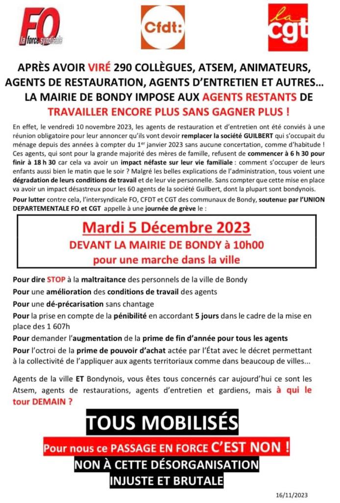 Les mobilisations partielles des personnels communaux ont permis de faire reculer le maire, les Bondynois.es doivent soutenir ces revendications : un personnel reconnu, c’est le véritable esprit du service public, usagers et travailleurs nous avons les mêmes intérêts.