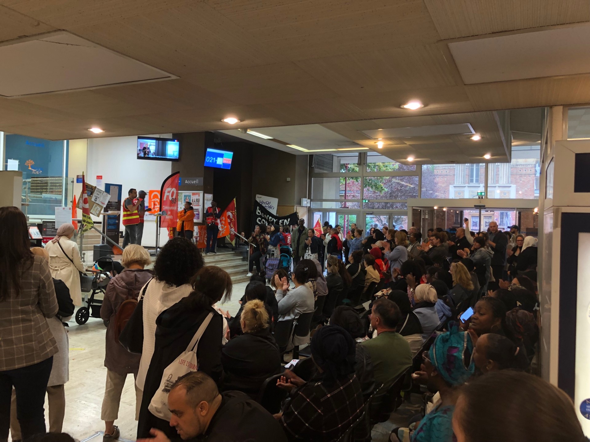 Vendredi 13 octobre, plusieurs centaines de membres du personnel de la mairie étaient mobilisées dans la grève, elles se sont rassemblées dans le hall d’accueil.